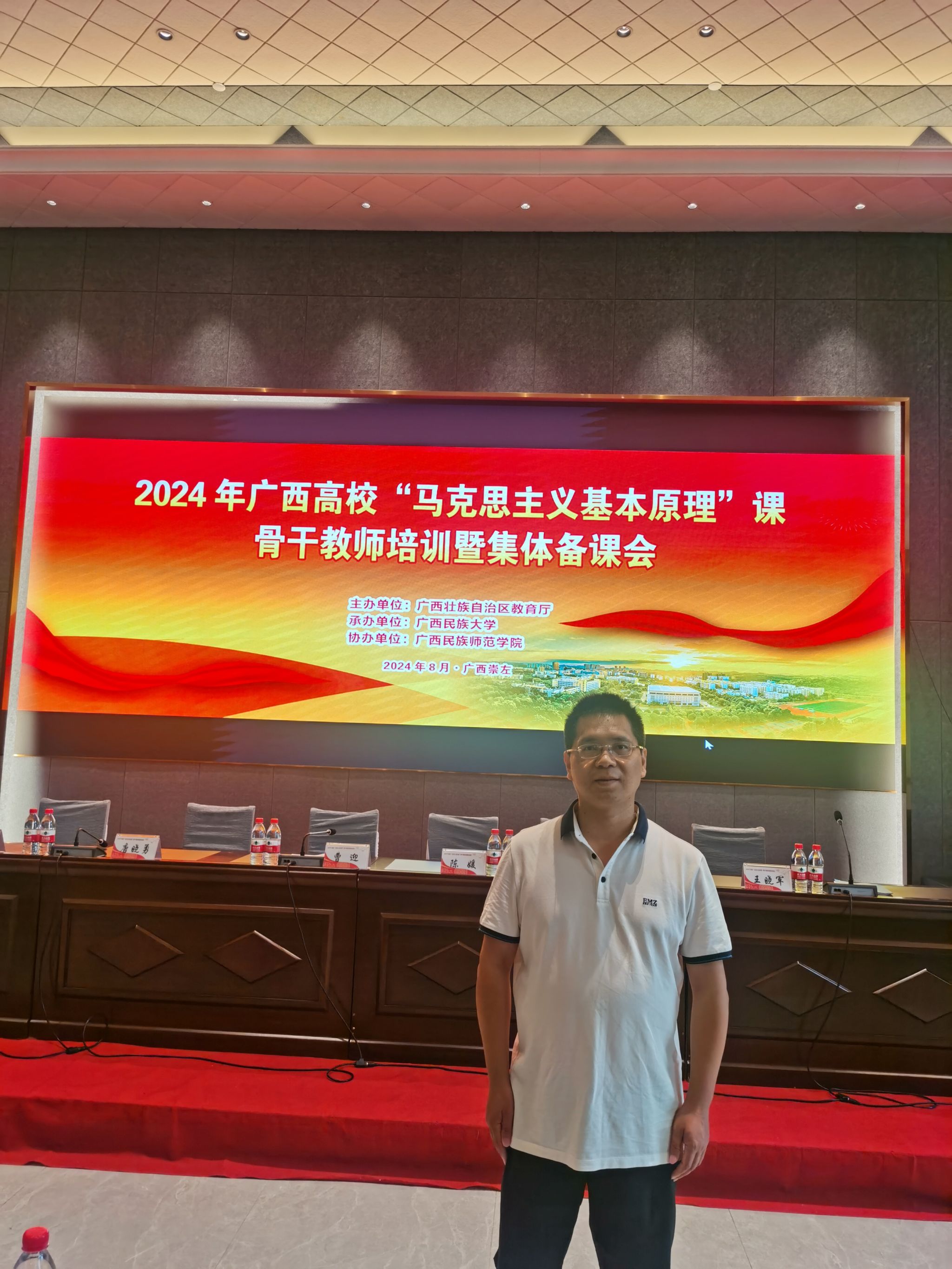 2024年8月18日至22日,由自治区教育厅主办,广西民族大学承办,广西民族师范学院协办的2024年广西高校“马克思主义基本原理”课骨干教师培训暨集体备课会在广西崇左市举行,我院教师林罕参加了此次培训。此次集体备课会,以思政课“大中小一体化建设”为主题,分为专家报告、优秀大学教师教学展示、高中教师教学展示、红色文化参观实践、座谈会等环节。本次培训课程内容丰富,教学形式多样,参训教师深受启发、收获颇丰,不仅收获了专业的知识,进一步提升了自身的专业素养和教学能力,同时也更加坚定了思政课教师的责任与使命担当。