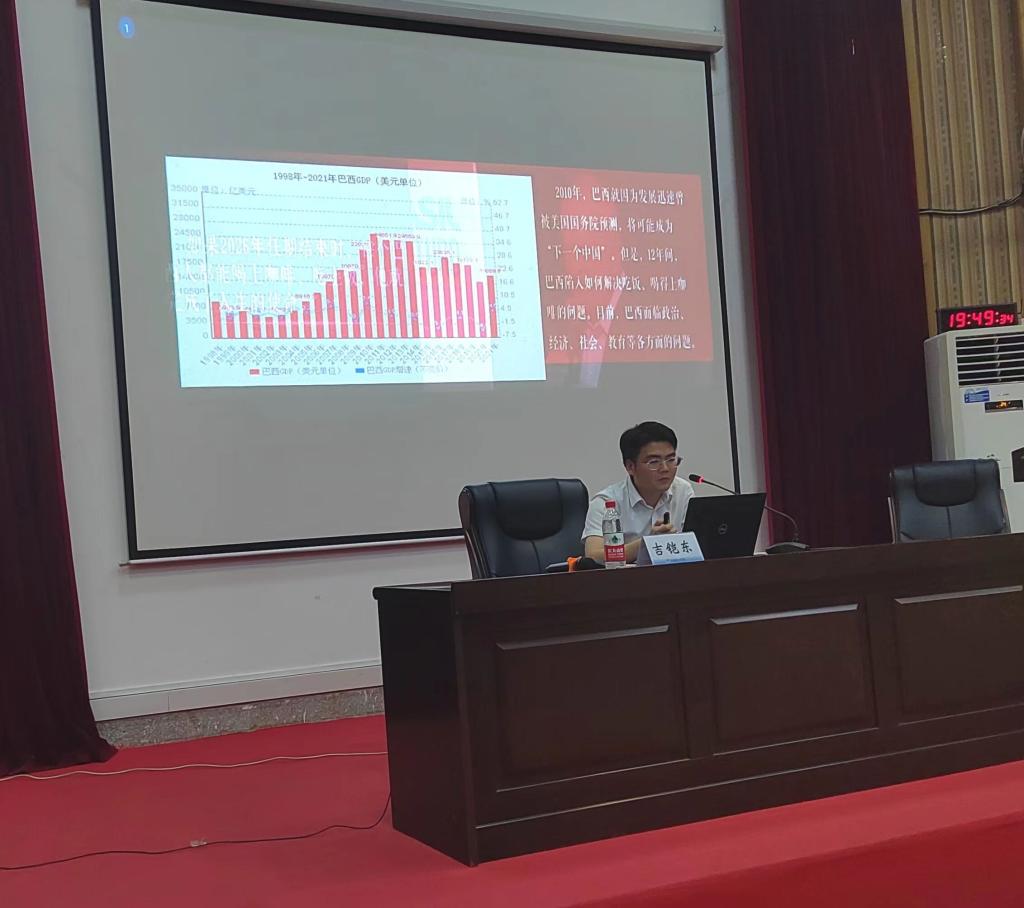 5月31日,我院教师、广西青年讲师团成员吉铠东博士根据团中央开展理论宣讲的要求,为学校第十届青马工程培训班近200名学员,开展主题为《伟大变革——中华民族伟大复兴何以不可逆转》理论宣讲,吉铠东博士从党的领导、制度保障、物质基础、精神力量等方面论述了中华民族伟大复兴进入到不可逆转的历史进程,并寄语青年学生坚定理想信念、学好本领、锤炼品质,努力成为能堪民族复兴大任的时代新人。