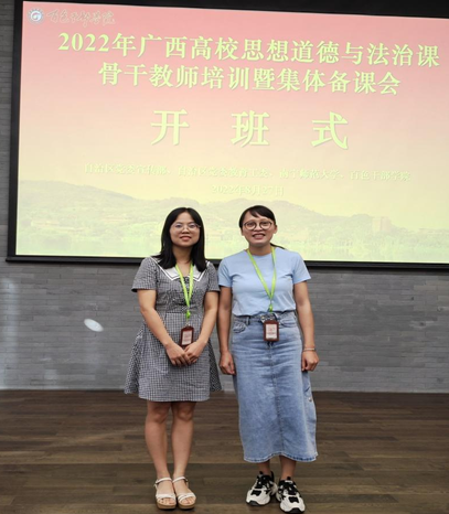为深入贯彻落实习近平总书记关于思政课建设的重要讲话和指示批示精神,不断提高“思想道德与法治”课教师思想政治理论工作水平,由自治区党委教育工委、自治区教育厅主办,南宁师范大学、百色干部学院承办的2022年广西高校“思想道德与法治”课骨干教师培训暨集体备课会于8月26—30日在百色干部学院举行,我院教师黄倩倩、李宇萍参加了本次培训会。