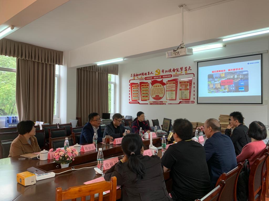 罗展鸿对来访客人表示欢迎。重点围绕学科建设、教学改革、师资队伍和科学研究等方面,向来客介绍了我院的基本情况;并分享了我院打造的“蓝天是我们永远的向往”“青年教师话党史”“ 马老师来了”等大学生思政教育品牌的特色做法。