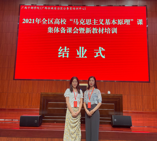 为帮助思政课教师进一步理解新教材,确保用好新教材,不断提高思政课建设的质量和水平,由广西壮族自治区教育厅主办、广西民族大学伟德bv1946官网承办的2021年全区高校“马克思主义基本原理”课骨干教师培训暨集体备课会于9月22日至24日在南宁举行。我院原理教研室教师潘梅华、黄平参加了本次线下培训,多名教师参加了线上培训。
