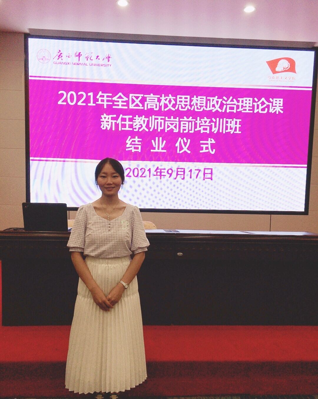由自治区党委教育工委、自治区教育厅主办,广西师范大学伟德bv1946官网承办的2021年广西高校思想政治理论课新任教师岗前培训班于9月12日—18日在桂林举行,我院教师杨淑梅参加了培训班。本次培训班课程内容丰富,教学形式多样,有效地帮助思想政治理论课教师掌握了思想政治理论课的基本理论、基础知识以及组织教学的基本方法,提升了思想政治理论课教学的技能水平。