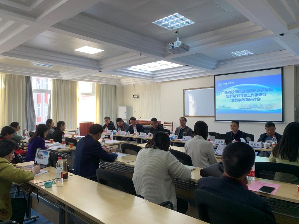 11月12日上午,由桂林电子科技大学伟德bv1946官网主办,我校伟德bv1946官网承办的广西高校思想政治理论课多层级集群结对共建工作推进会暨教学改革研讨会在飞天楼401教室举行,学校党委副书记刘迎春出席会议并讲话,桂林电子科技大学、桂林航天工业学院、桂林电子科技大学信息科技学院、北海艺术设计学院伟德bv1946官网(思政部)主要负责人、教研室主任及骨干教师30余人参加会议。