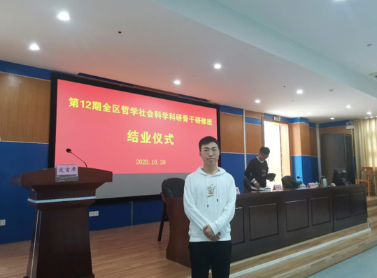 10月25-20日,由自治区党委宣传部主办,自治区党校承办的第12期哲学社会科学科研骨干研修班在广西南宁如期开展,我院教师庄玉玺参加了此次培训。