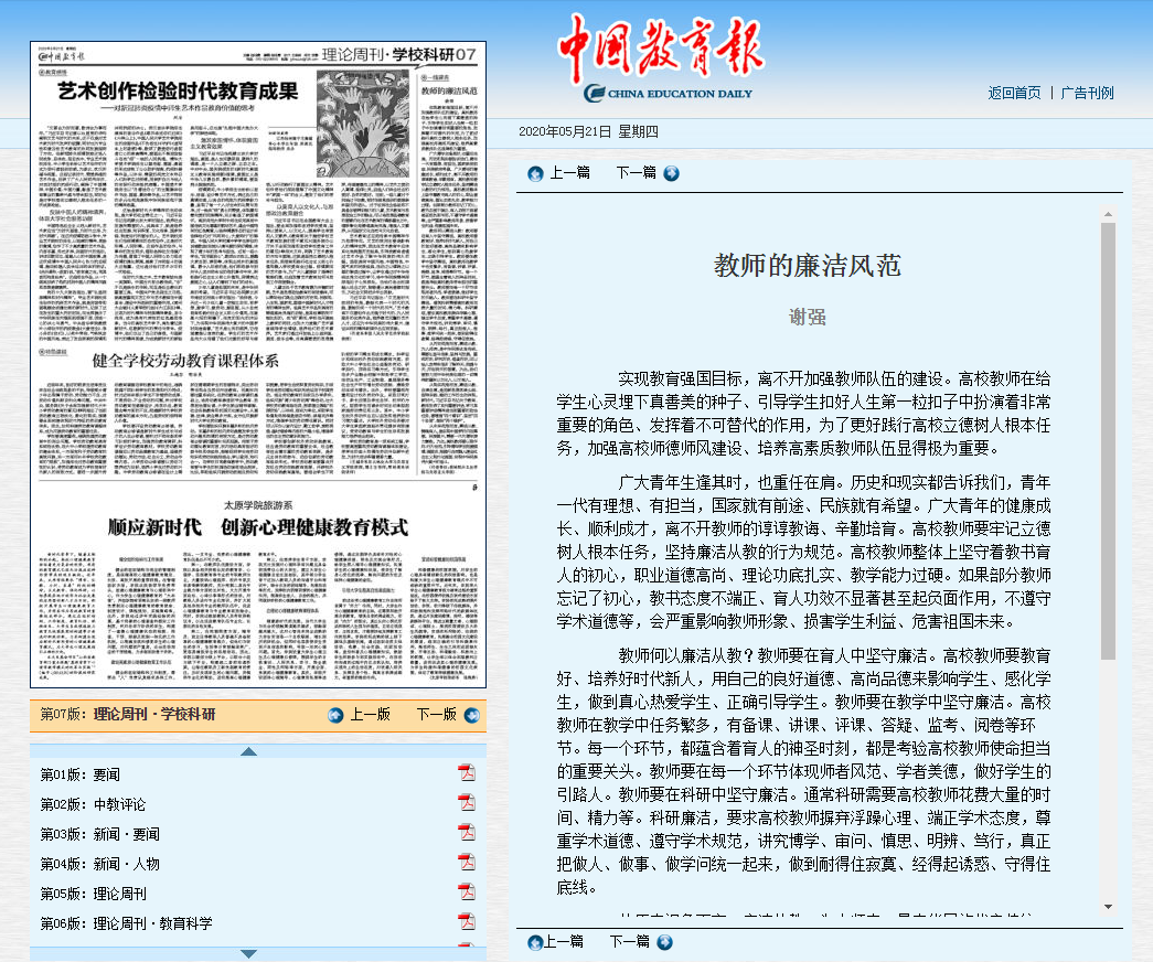 近日,《中国教育报》刊登我院谢强老师的文章《教师的廉洁风范》,现转发全文。