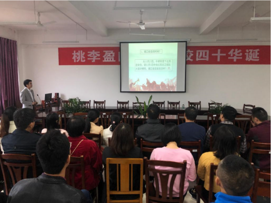 10月25日下午,吉铠东老师应机械工程学院党总支书记唐韬的邀请,在该院会议室向党员老师分享了题为《革命理想高于天——湘江战役的历史与启示》的党课,吉老师从湘江战役的历史背景,红军行征过程,英雄典型事迹出发,生动讲解了湘江战役途中发生的点滴。经过一个小时的分享,党课圆满结束,取得良好效果。
