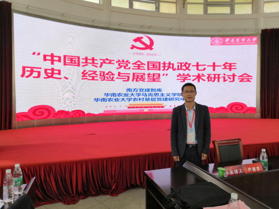 11月16日,我院教师谢强在华南农业大学参加了由南方党建智库、华南农业大学伟德bv1946官网、华南农业大学农村党建研究中心联合举办的“中国共产党全国执政七十年历史、经验与展望”学术研讨会。