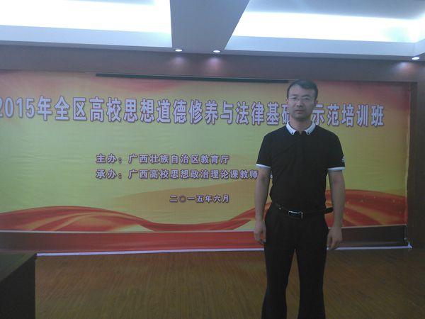 为贯彻落实党的十八届四中全会及习近平总书记系列重要讲话精神,进一步提升我区高校思想政治理论课教师队伍素质,广西教育厅于6月23一26日在广西高校思想政治理论教师培训基地(广西师范学院)举办了2015年全区高校思想道德修养与法律基础课示范培训班。全区各高校近80名专家和学员参加了此次培训,我部刘泳平老师参与了此次培训并顺利结业。